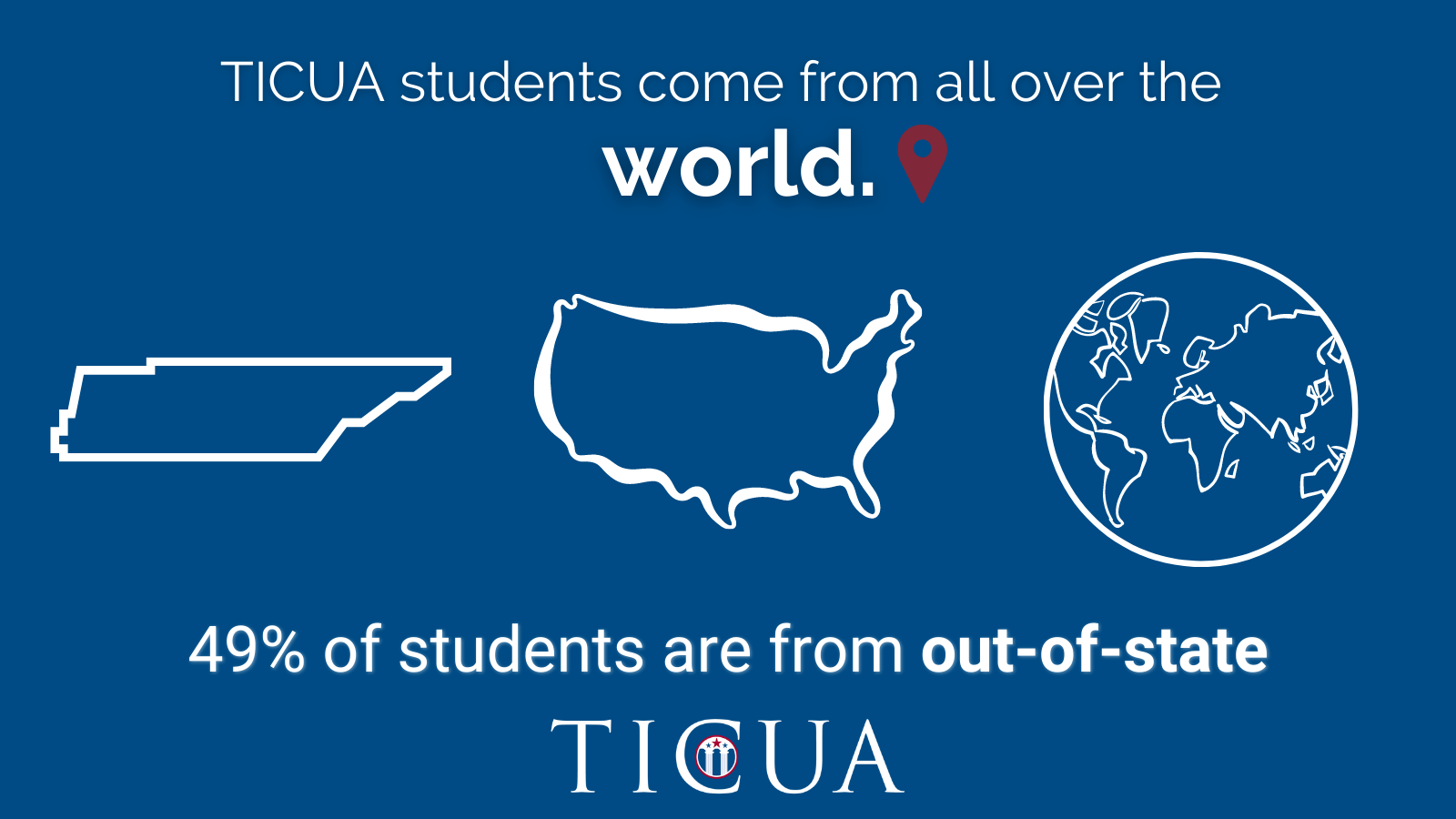 TICUA campuses educate students from every county in Tennessee, every state in U.S. and 150 countries world wide. 49% of TICUA students are from out-of-state. By attracting students from all over the United States and from all around the world, TICUA member campuses make Tennessee and importer of intellectual capital. Students come here to study and stay to live, work, and raise a family in Tennessee.